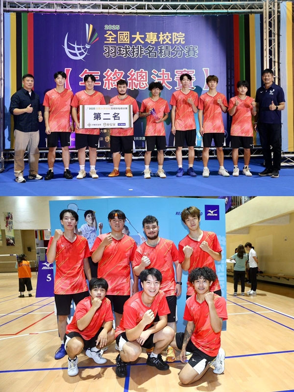 進修部運休學程劉子瑜 蔡松宇 李祖榮 許立宏 許育綾 簡于筌 蕭祥侑,於114年10月11-12日,參與2025全國大專羽球排名積分賽-年終總決賽,奪得團體賽第二名佳績。(圖片摘自大專體總全國大專校院羽球排名積分賽粉絲團)