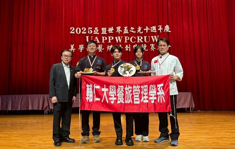 本校餐旅系童富源老師帶領學生參加2025年11月16日「UAPP WPC RUW 2025 亞盟第十屆世界盃美學廚藝烘焙競賽」,分別由餐旅二甲張維成榮獲「和菓子與果醬畫盤展示組」金牌;餐旅二乙顏云萱榮獲「冷前菜及開胃菜展示組」金牌;餐旅二乙黃弘育榮獲「創意義大利麵展示組」銀牌!!為系爭光!!