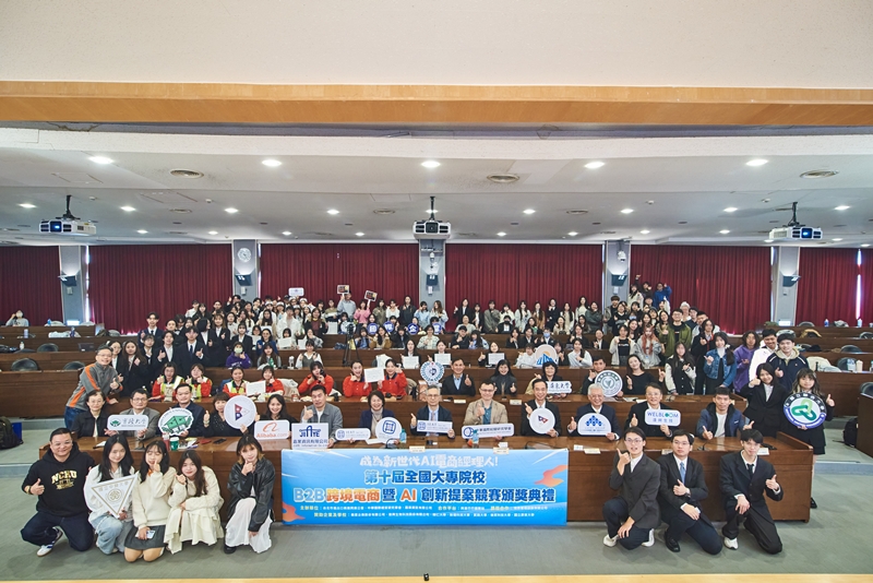 ▲第十屆全國大專院校B2B跨境電商暨AI提案競賽頒獎典禮全體合影