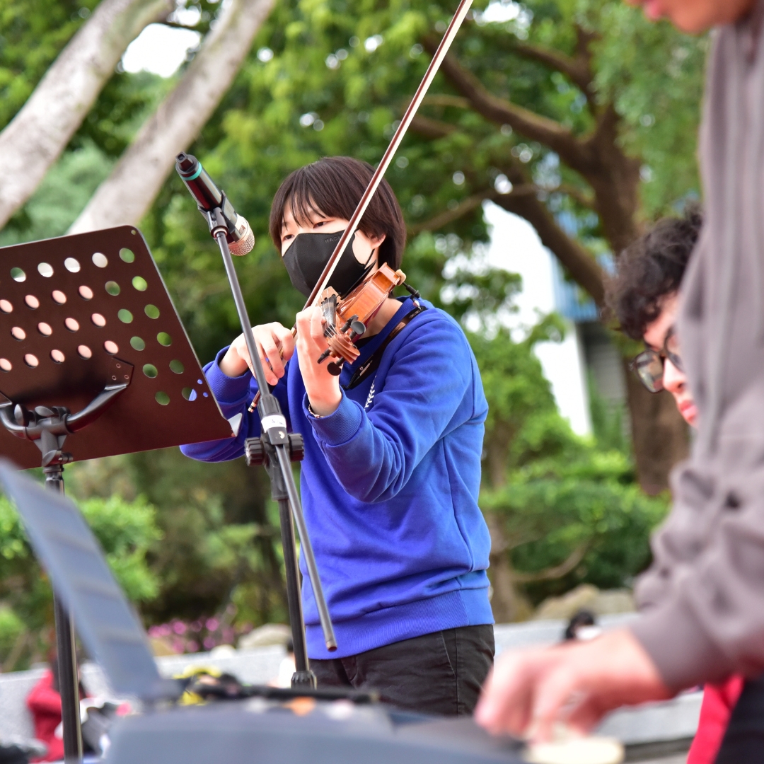 ▲圖說:音樂系同學以樂曲展現專業外,也讓現場充滿悠揚的樂聲