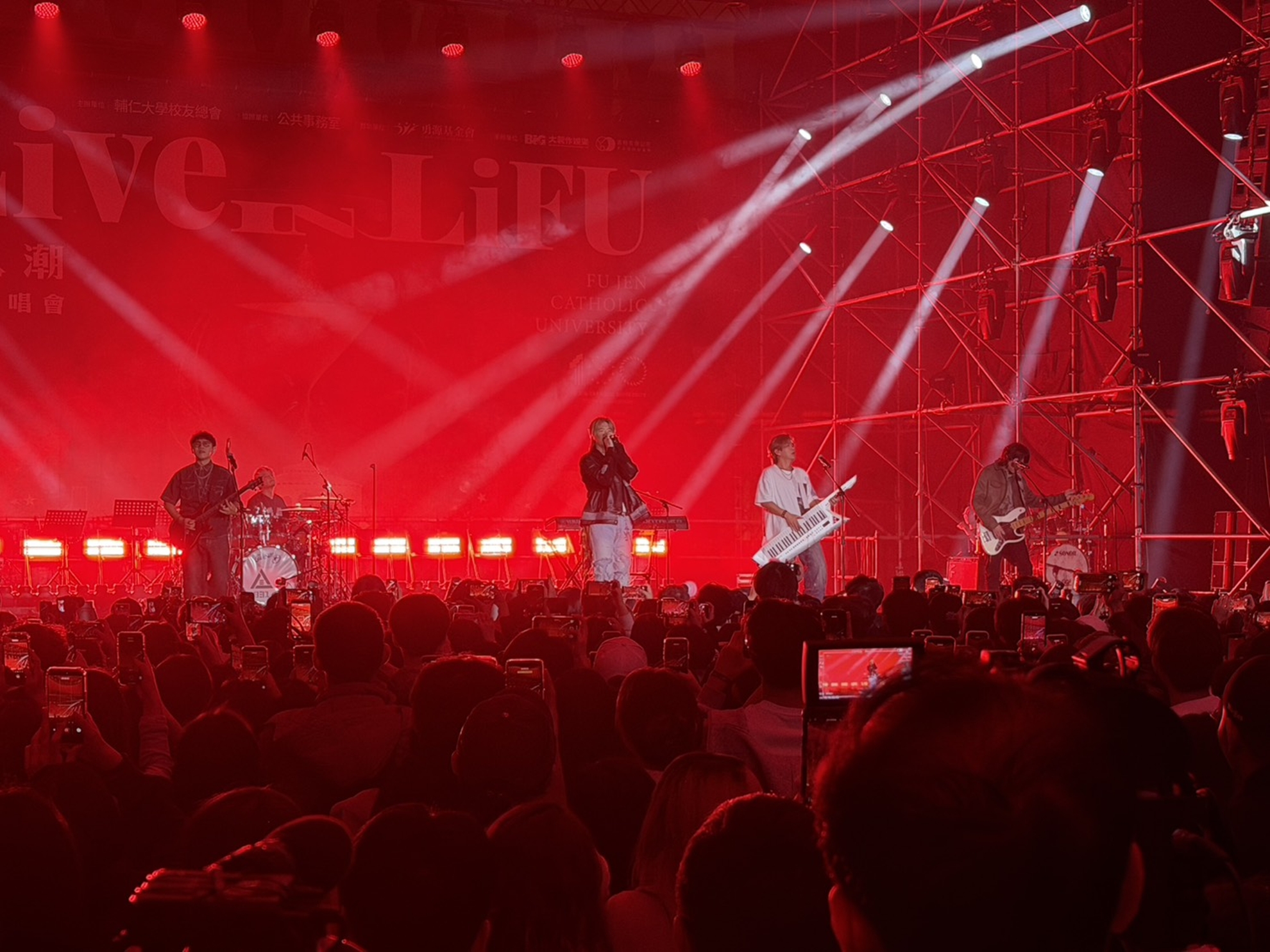 告五人上台引起一波高潮,他們說曾經在出道時來過輔大,所以會有一點感情,今天特地去吃了食科冰還有學餐。