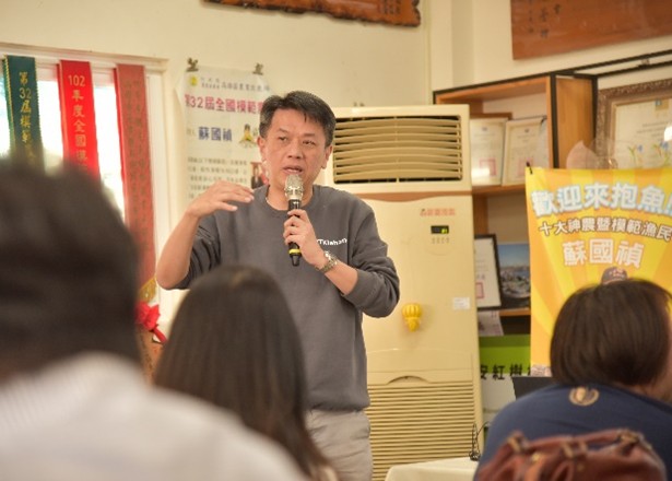 丁教授在交流中表示,計畫將課程教學與場域連結,與台17線的漁鄉聚落共同解決實際問題,並展示「全魚應用」多樣化的實踐成果。此外也特別請到計畫培植的青創團隊,分享如何改善漁業養殖模式,建構完整的在地循環經濟體系。高科大並於蘇班長安心漁場安排石斑魚養殖導覽,參訪成員更親自進行抱魚及餵魚的難得體驗!