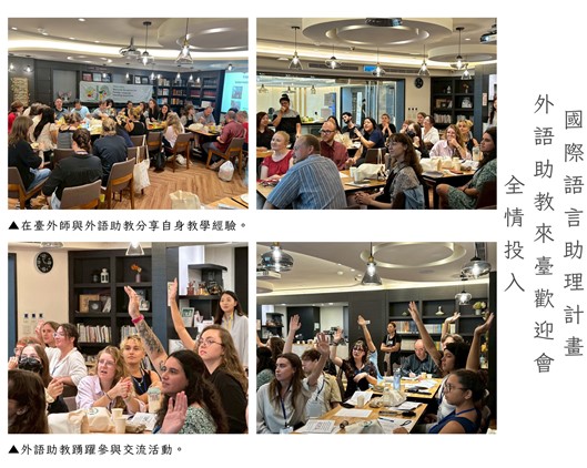 歡迎會當天安排講師分享在臺生活須知,也邀請在臺灣生活多年的德國籍和法國籍外師進行經驗分享,並安排互動交流時間,由學生分組回答與臺灣相關的問題,促進外語助教間情誼,也增進他們對臺灣的認識與了解。