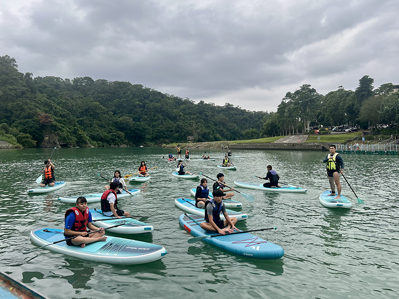 本學期開設的「新興運動推展與實務」課程為大一學生必修科目,以「體驗、實作、推廣」為核心理念,帶領學生透過實際操作與企劃實踐,理解新興運動的教育價值與產業潛能。課程於11月7日完成立式划槳(Stand Up Paddle, SUP)水域教學,學生先於校內游泳池完成六次學科與安全訓練,並於11月1日與11月7日前往碧潭進行實地操作與平衡練習。課程不僅重視技能與安全,也融入活動企劃、推廣策略與課程設計,強調從「體驗」到「應用」的完整學習歷程。