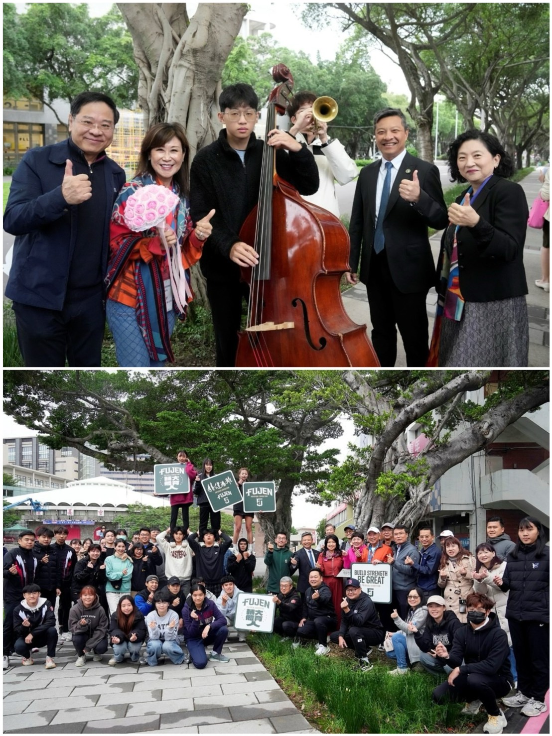 沿途各學院師生以熱情與創意迎接貴賓:音樂系以長號與大提琴合奏迎賓;體育系以活力十足的啦啦隊表演致意;其他學院亦以各自特色方式表達感謝,場面溫馨而熱烈。