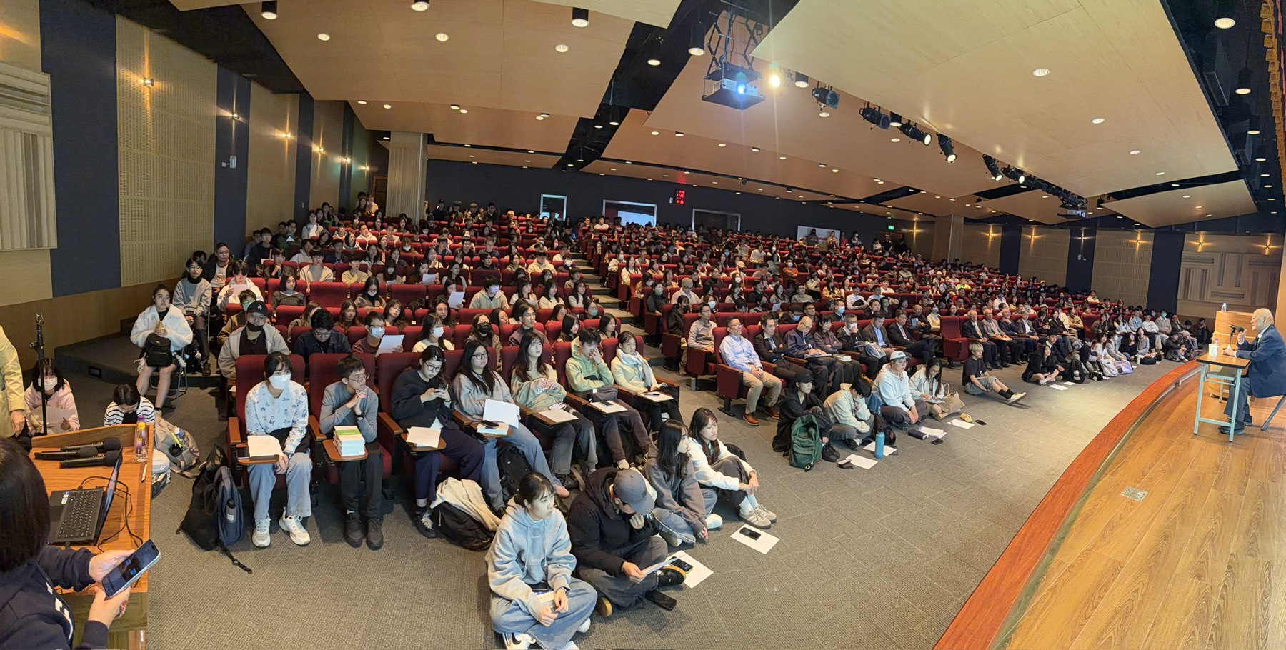 演講結束後,隨即展開了熱烈的簽書會。現場排隊人潮綿延不絕,展現了師生對王院士著作的推崇。王院士看到了環繞會場一整圈的簽書排隊人潮,不辭辛勞耐心地為每一位排隊的同學、校友及老師們簽名,並親切互動。