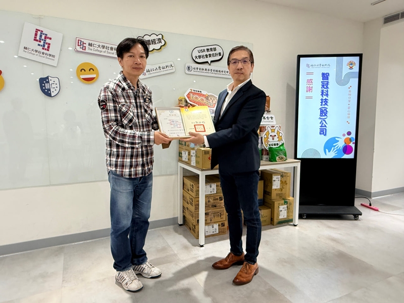 【社會科學院供稿】輔仁大學社會科學院秉持社會創新精神,持續推動大學社會責任(USR)計畫「打造新莊永續協力網絡:惜食經濟、地方文化誌、NPO網絡的共生」。智冠科技今年再度展現企業社會責任(CSR),連續四年捐贈10萬元予本院「社會創新與非營利組織研究中心」,並透過USR協力網絡捐贈價值2萬元物資予興毅基金會「忠信食物銀行」,共同支持新莊地區惜食永續循環。12月12日中午於社科院產業實習委員會中,由黃俊傑院長代表致贈感謝狀。