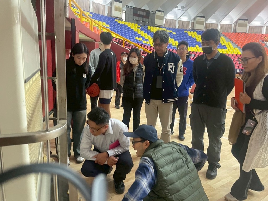 ▲圖說:行政團隊引領SGS稽核員實地稽核中美堂、國璽樓等樓棟能源設備。