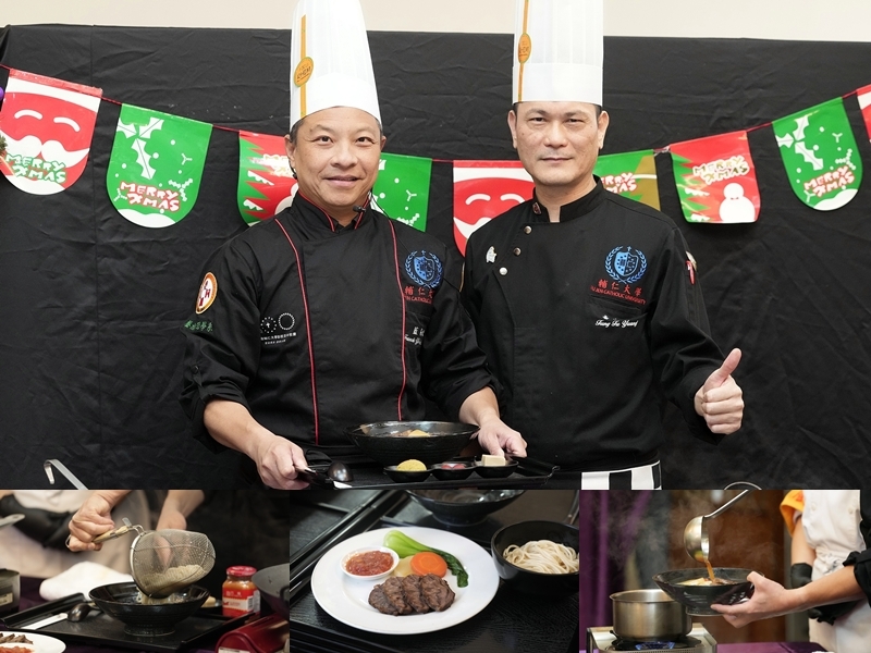 【餐旅管理學系供稿】輔大百年校慶,藍校長將之前在澳洲留學時,自行烹煮牛肉麵的配方提供給餐旅管理學系參考,由民生學院郭孟怡院長發起,委託餐旅管理學系李青松主任與童富源老師帶領「餐廳經營管理實務」三年級乙班同學完成,並以感恩餐會方式,宴請輔大美國基金會董事、捐贈給輔大的校友、家政系畢業第一屆校友及李寧遠前校長與夫人。