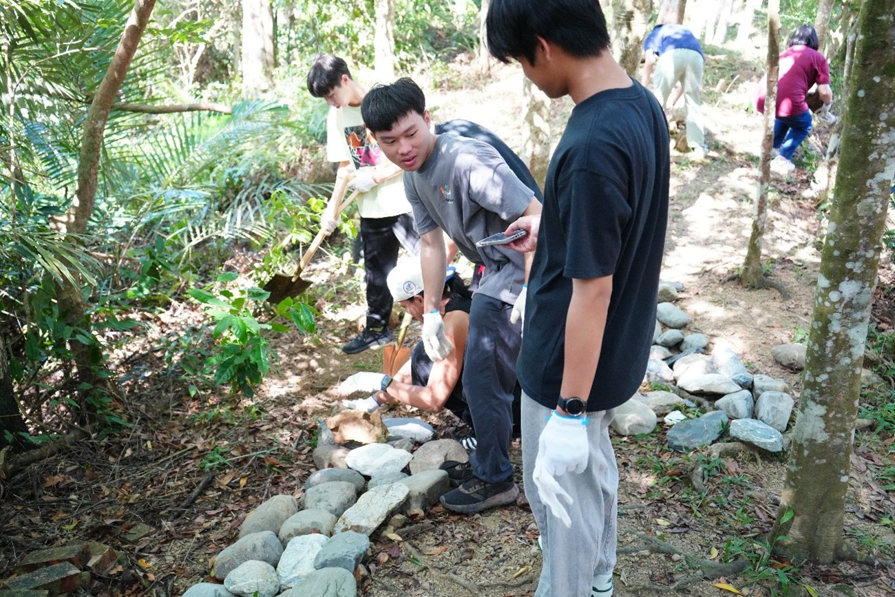 【運休學程供稿】運休學程與石碇螢火蟲公益書屋合作淨山活動,共同推動SDG15(保護陸域生態多樣性)及SDG6(確保淨水與衛生),在114年10月18日,由鄭翔尹教師帶領運休學程53位、商管學程、長照學程及英文系各1位學生,進行撿拾垃圾淨山、水溝雜草疏通、邊坡駁坎鋪設、生態排水工法施作、螢火蟲棲地復育、志工前進基地維護…等永續服務項目,透過親身實作,為地球永續及台灣環境盡一分心力。