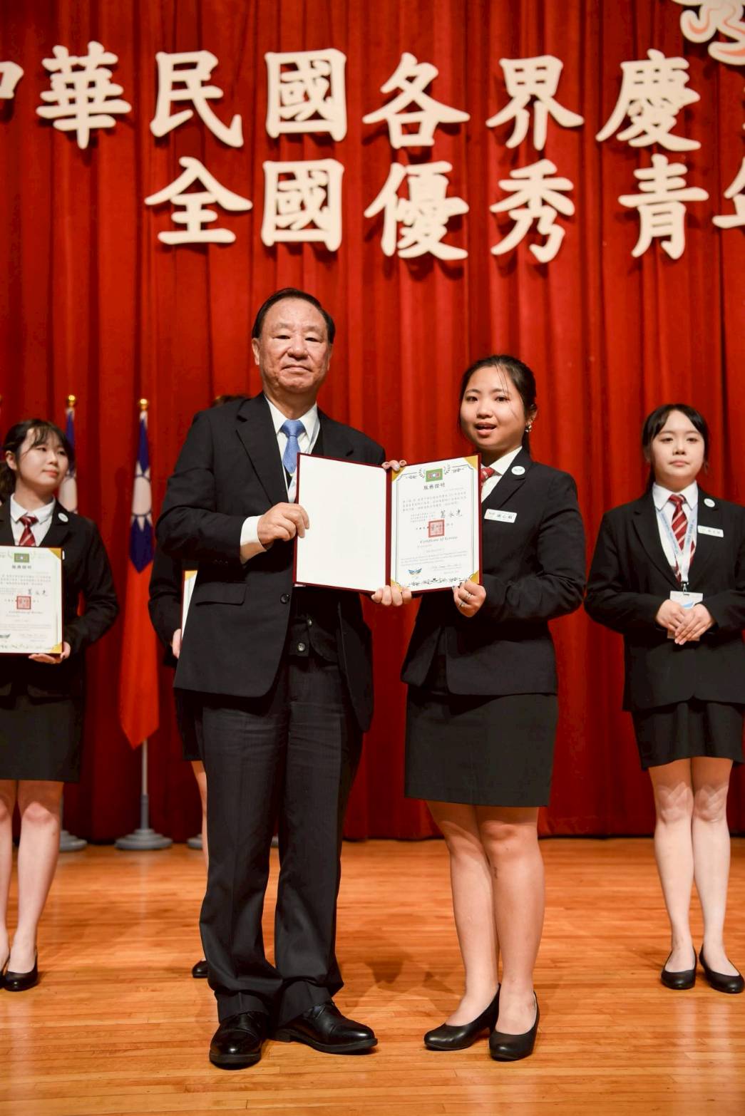 ▲圖說:運休學程康心蘋同學獲頒青年節全國優秀青年表揚大會執行委員證書