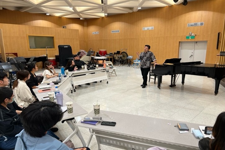 【音樂系供稿】為拓展音樂學系聲樂組學生在歌劇製作與舞台演出的視野,本學期特邀香港演藝學院聲樂系的徐惟恩教授,於十一月八、九日至音樂學系學術交流,同時以《歌劇製作全解析》為題,舉辦專題演講與大師班活動。徐教授以香港演藝學院每學年執行演出的歌劇製作為例,從選曲、選角、練唱效率、排練安排,以及與其他專業領域的音樂家、藝術家、設計者分工合作的過程,詳述歌劇製作的眉角,不藏私地與同學們分享。近幾年開始,聲樂組大班課的課程設計,增設並強化與歌劇相關的實踐課程,從表演、身體律動、情緒導入等主題,作為授課重點,期待能教導學生把歌劇中單一角色的特徵與個性,與歌唱的詠嘆調做出更緊密的結合。學生在學習過程中不停地習唱,腦袋裡卻往往建構不出具體的歌劇角色個性與形象;而一部完整歌劇的成形,究竟包含哪些步驟與過程,多數學生們也都懞懂不知。透過這個專題演講,成功開啟同學們對於歌劇製作這項整體藝術的視野,落實對舞台表演藝術的想像。