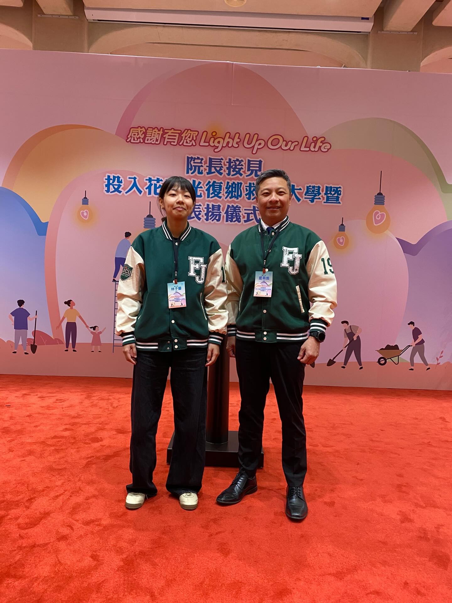 行政院26日舉行投入花蓮光復鄉救災大專校院暨表揚典禮,儀式由行政院長卓榮泰親自主持,表彰在去年九月花蓮光復鄉災後復原工作中,積極投入的青年學子與大專校院。輔仁大學藍易振校長親率學生代表林子馨出席受獎。藍校長表示,輔大師生在災難中展現的行動力,不僅是對社會責任的承擔,更是本校全人教育的具體實踐,輔大將持續配合政府政策,引導學生將所學回饋社會。