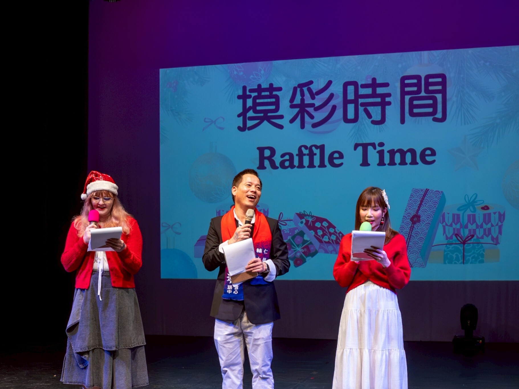 活動現場準備豐盛餐點,並穿插安排摸彩活動;隨著抽獎結果一一揭曉,現場不時響起歡呼與笑聲,為節慶夜晚增添驚喜與喜悅。