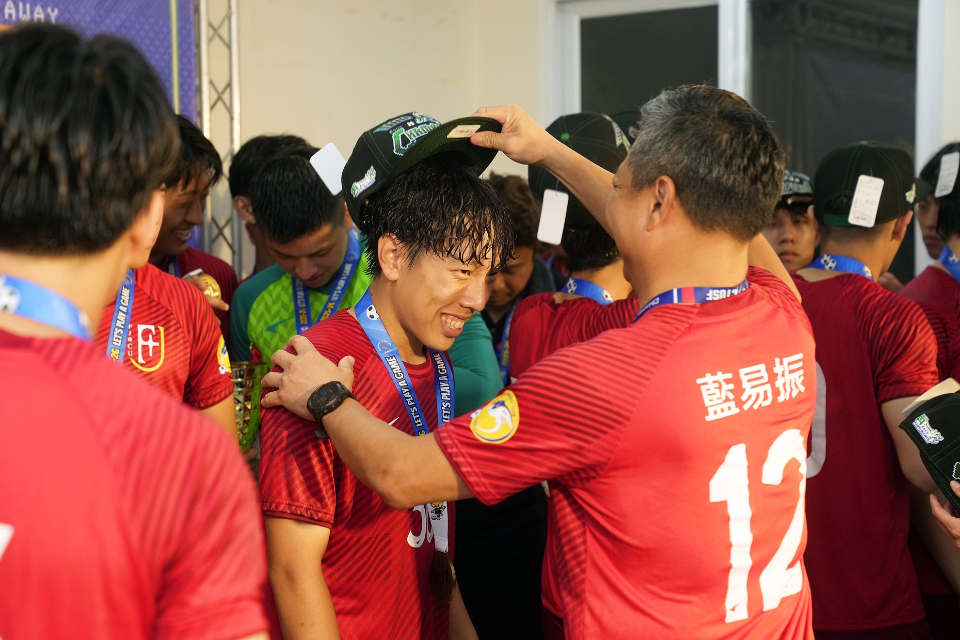 輔仁大學校長藍易振表示,男足隊連兩年逆轉求勝締造連霸佳績,充分展現學生運動員堅持不懈的精神與團隊合作的力量,學校對此深感驕傲。未來也將持續提供完善資源,支持學生在競技運動與學術發展上並進,培養具備國際視野與專業能力的人才。此外,球隊長期亦獲得校友林湧成董事長航源足球俱樂部的支持與協助,在訓練資源、技術交流及實戰經驗方面皆有顯著提升。透過與專業俱樂部的合作,讓球員得以接軌更高層級的足球體系,進一步強化整體競爭力,成為本次奪冠的重要助力。
