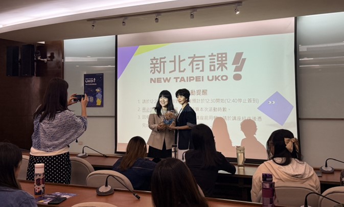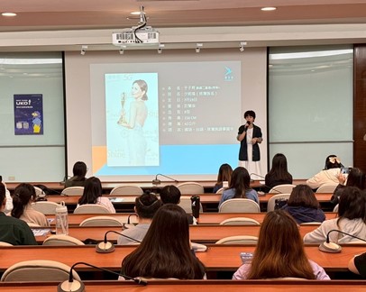 ▲于子育老師於「職涯沙龍」講座中,以「人生如戲,職涯百變—從角色出發,看見職涯多種可能」為題,分享從歌手、主持人到演員的多元職涯歷程。