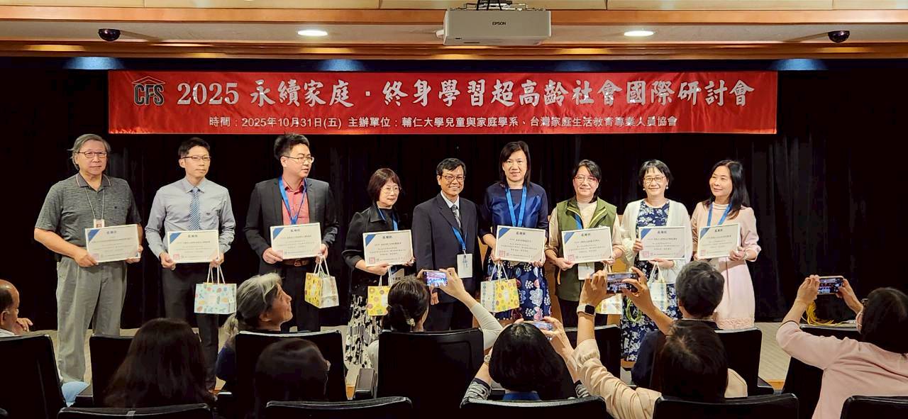 除專題演講亦有海報與口頭共46篇論文發表,涵蓋個別化家庭教育;兒童社會情緒發展;婚姻教育推廣;親職調適、文化實踐與世代共融;跨世代連結與永續家庭的實踐;陪伴與成長:永續家庭的路徑等多面向議題,呈現理論與實務並進的成果。此次逾200位與會,不僅展現校內外學術研究能量,更透過跨國交流深化對高齡社會、家庭永續與終身學習的理解,期望為臺灣在邁向超高齡社會中,提供具啟發性與行動力的策略方向。