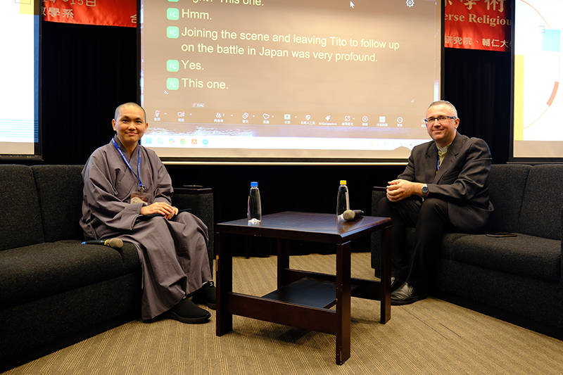 ▲第五場邀請釋堅融法師與呂博侃神父以「手映道」為主題進行跨宗教交談