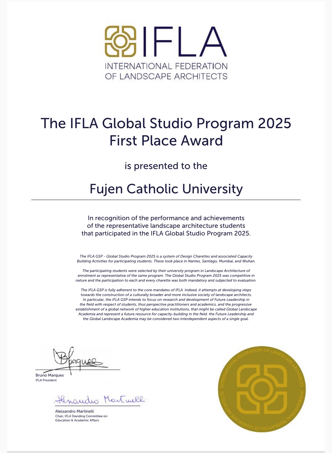 此次榮獲年度總冠軍,不僅是對參與學生專業能力的高度肯定,更代表輔仁大學在國際景觀教育領域之重要地位。未來,輔仁大學將持續深化國際合作網絡,推動跨域教學與永續議題整合,培育具備全球視野與在地實踐能力之景觀專業人才,持續在國際舞台上發揮關鍵影響力。