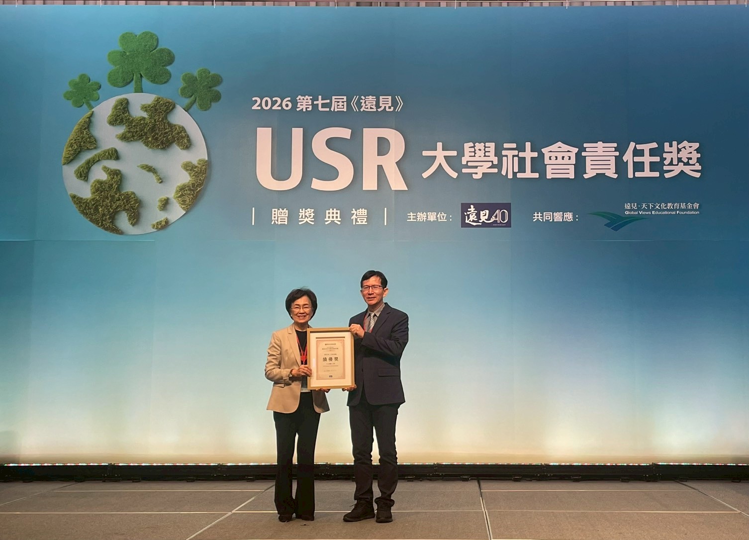 【USR計畫推動辦公室供稿】2026第七屆《遠見》USR大學社會責任獎日前公布得獎名單,在全台計有57所大專院校、222件計畫方案報名角逐7個組別、共67個獎項中,輔仁大學USR《水圳文化的傳承與創新:建構新莊生活環境博物園區》計畫榮獲「在地共融組」績優獎肯定。贈獎典禮於4月9日於台北遠東香格里拉飯店舉行,國內教育界先進齊聚一堂,輔大則由計畫協同主持人、歷史系主任蕭道中副教授代表與會授獎。