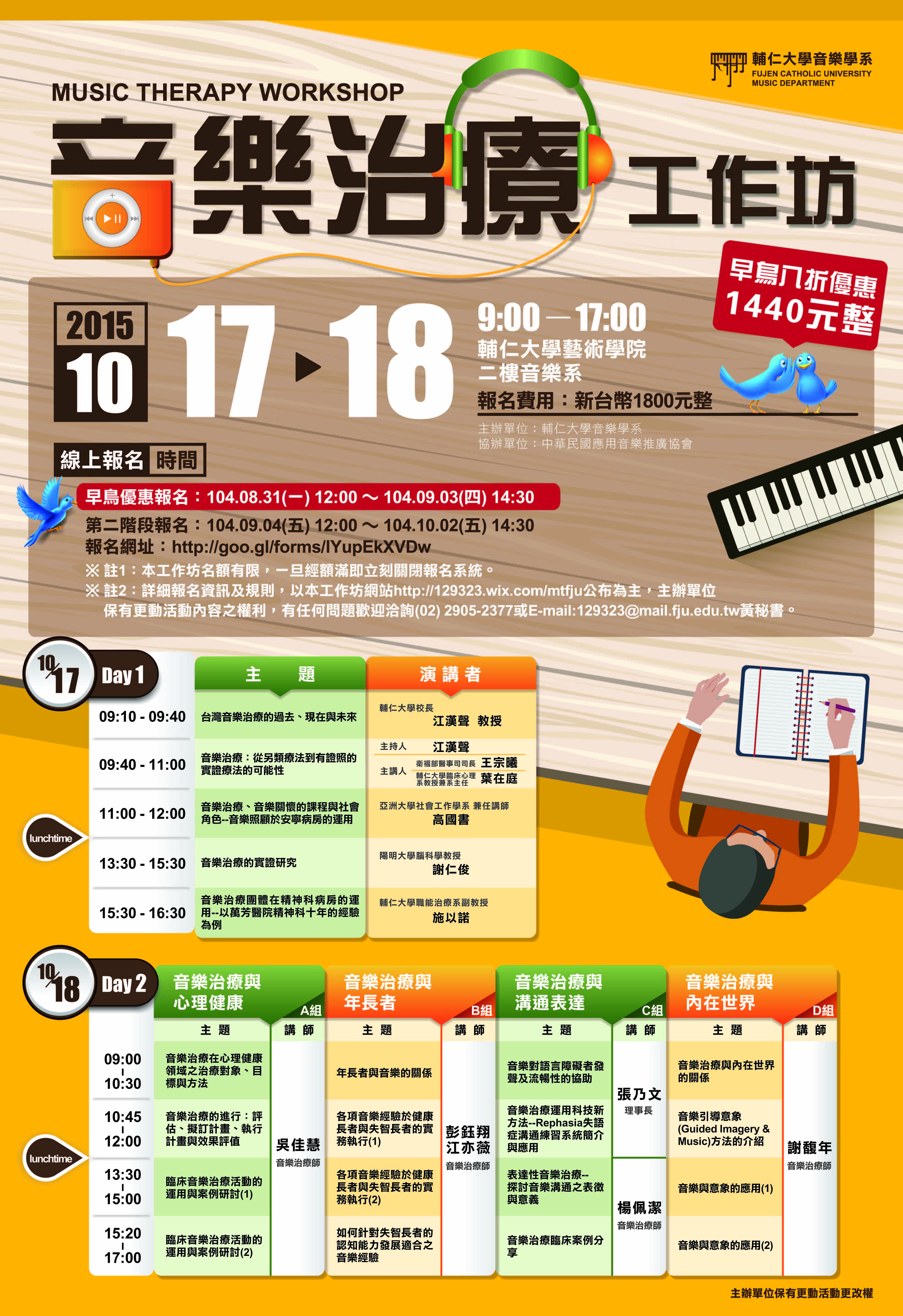 報名費用:1800元整;早鳥享八折優惠1440元整