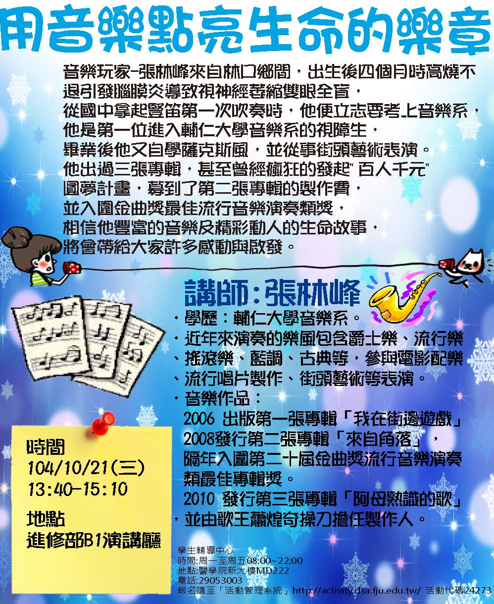 [學輔中心]用音樂點亮生命的樂章-勵志的生命故事+薩克斯風Live演奏