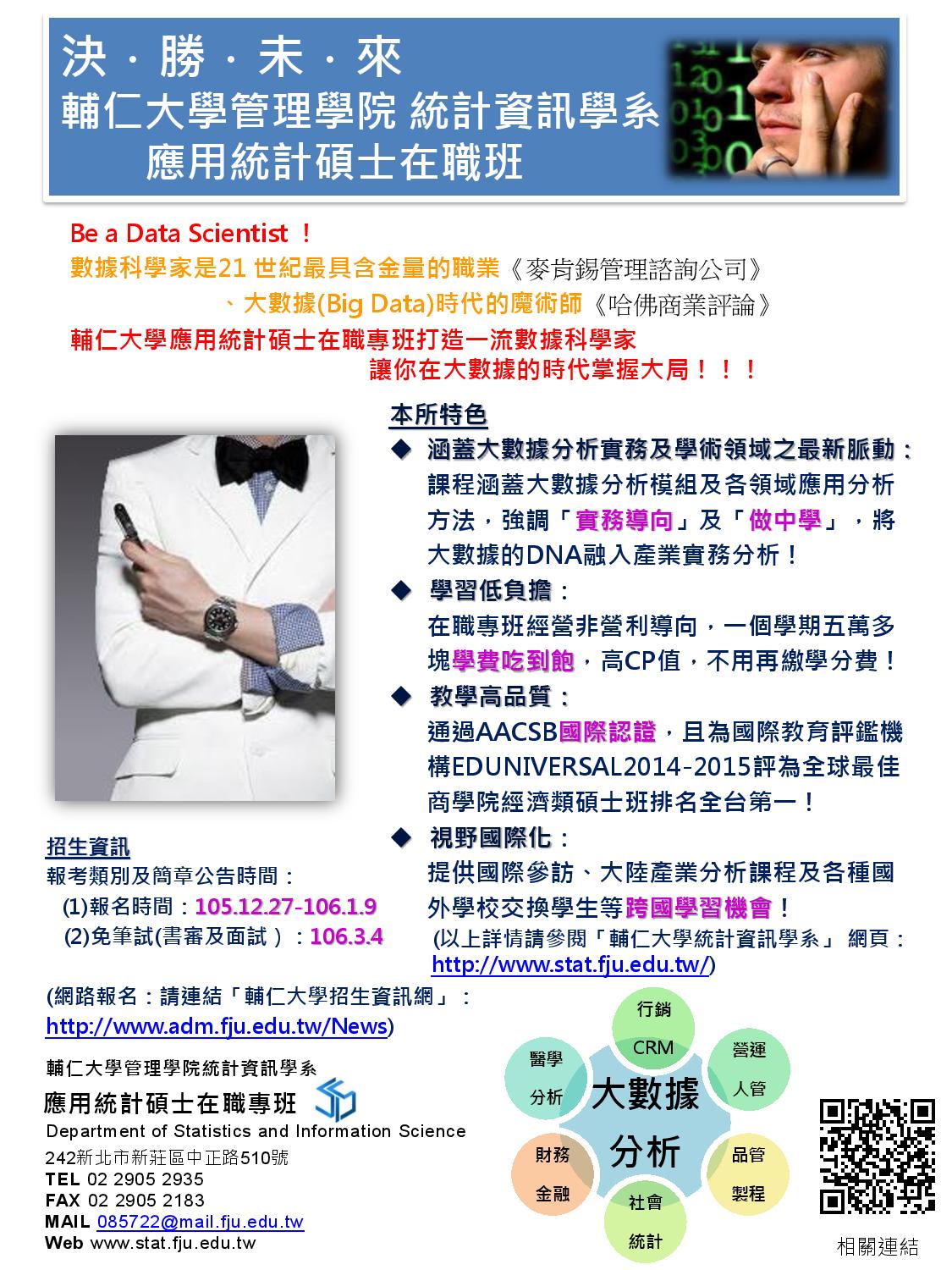 應用統計碩士在職專班打造一流數據科學家,讓你在大數據的時代掌握大局~106學年度應統專班招生訊息