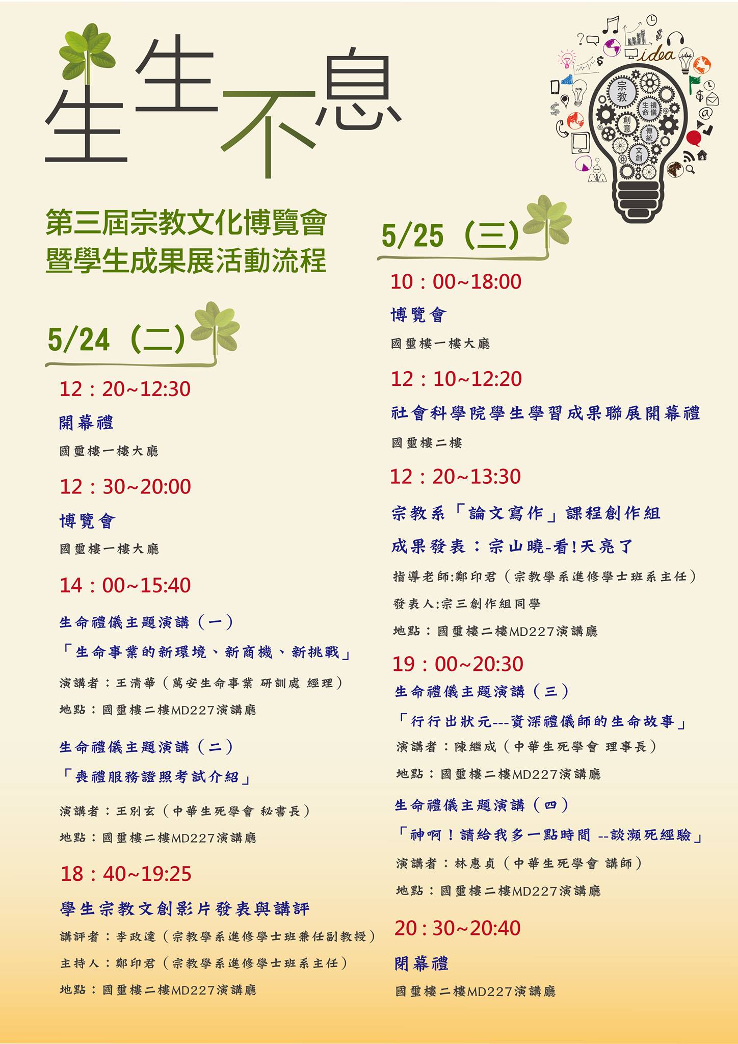 5/24(二)~5/25(三)生生不息第三屆宗教文化博覽會暨學生成果展
